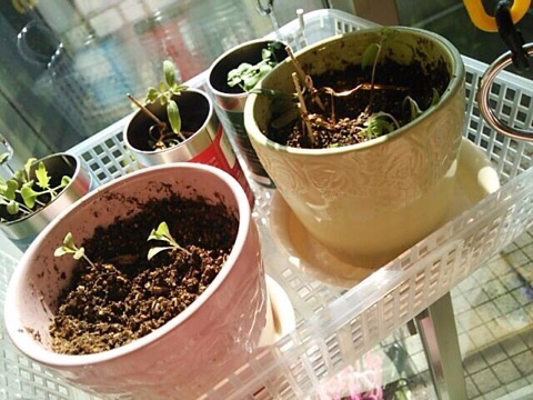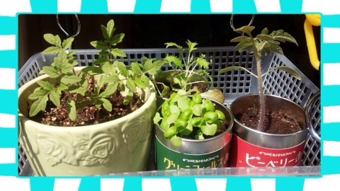 このあいだ植え替えたグリーンフィールズ缶のバジルがきちんと根付いていたこと!!