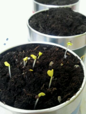 3缶とも今の季節、寒さやら花粉やら(もう少ししたら黄砂やら)で大変なので室内の比較的日当たりの良い所で育てているのですが、小林さんが、家の電気の光の方に伸びようか、外の日光の方に伸びようか迷っているみたいです。