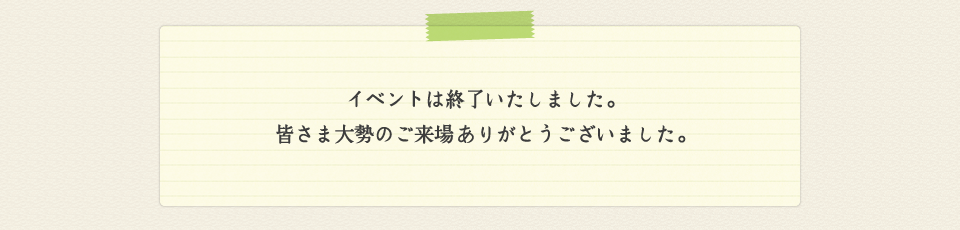 ■当日会場は、大勢のお客様にご参加いただくため混雑が予想されます。スタッフからの指示にご理解とご協力をよろしくお願い致します。