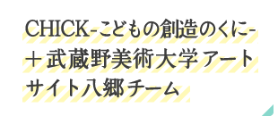 chick「こども創造のくに」は、こどもの創造的な環境作りを目的として活動を行う非営利団体です。近年では、使用可能にもかかわらず捨てられてしまう産業廃棄物を、アートやクリエイティブな視点からその価値を再発見し、こどものためのワークショップを実践しています。アートサイト八郷は、武蔵野美術大学の学生が主体となり、茨城県石岡市上青柳(旧八郷町)を舞台に2010年度からスタートしたプロジェクトです。現地で手に入る竹などを用いたアート作品の制作・展示は、学生の発表の場となると同時に、石岡市のアピールにもつながる活動です。