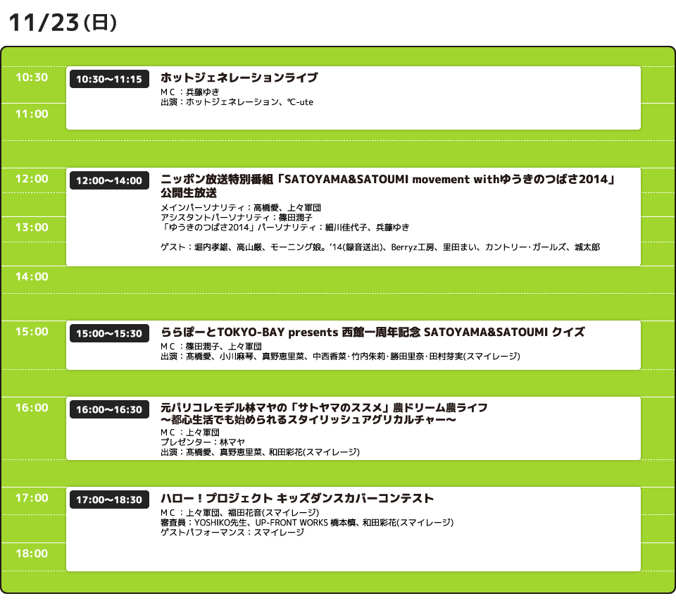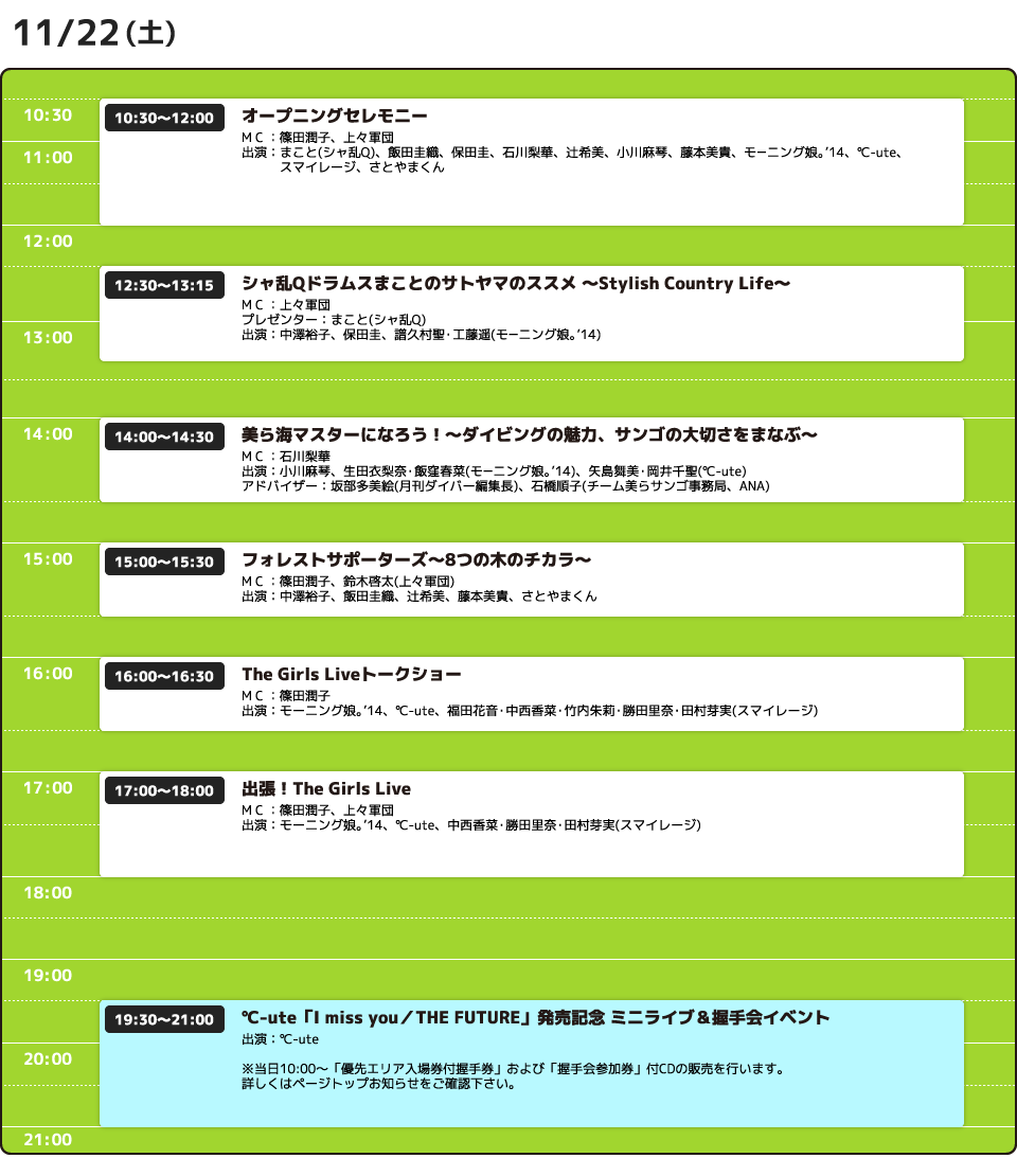 出演:モーニング娘。’14、℃-ute、福田花音・中西香菜・竹内朱莉・勝田里奈・田村芽実(スマイレージ)