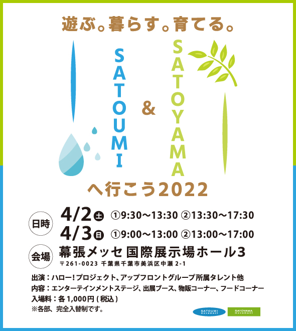 「遊ぶ。暮らす。育てる。SATOYAMA & SATOUMIへ行こう2022」エリアにご入場いただくために入場券が必要です。